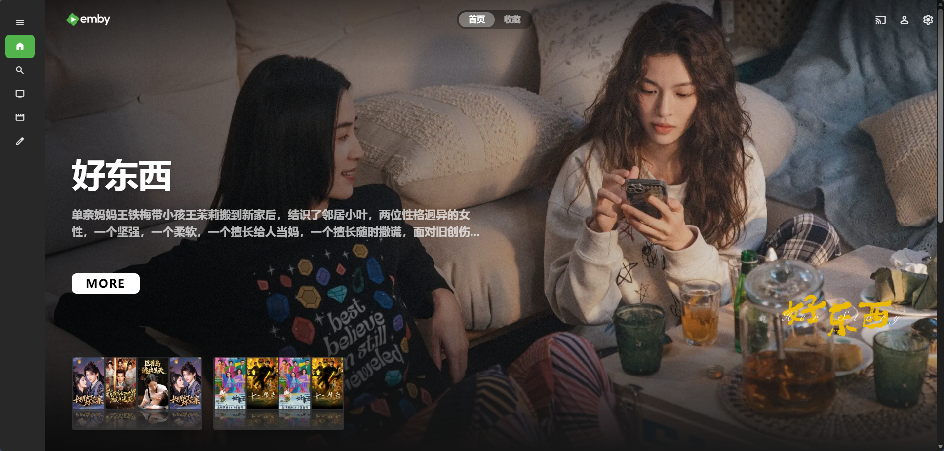 跳转到登录界面,输入刚才注册的帐号和密码就可以进入 Emby 的主界面了