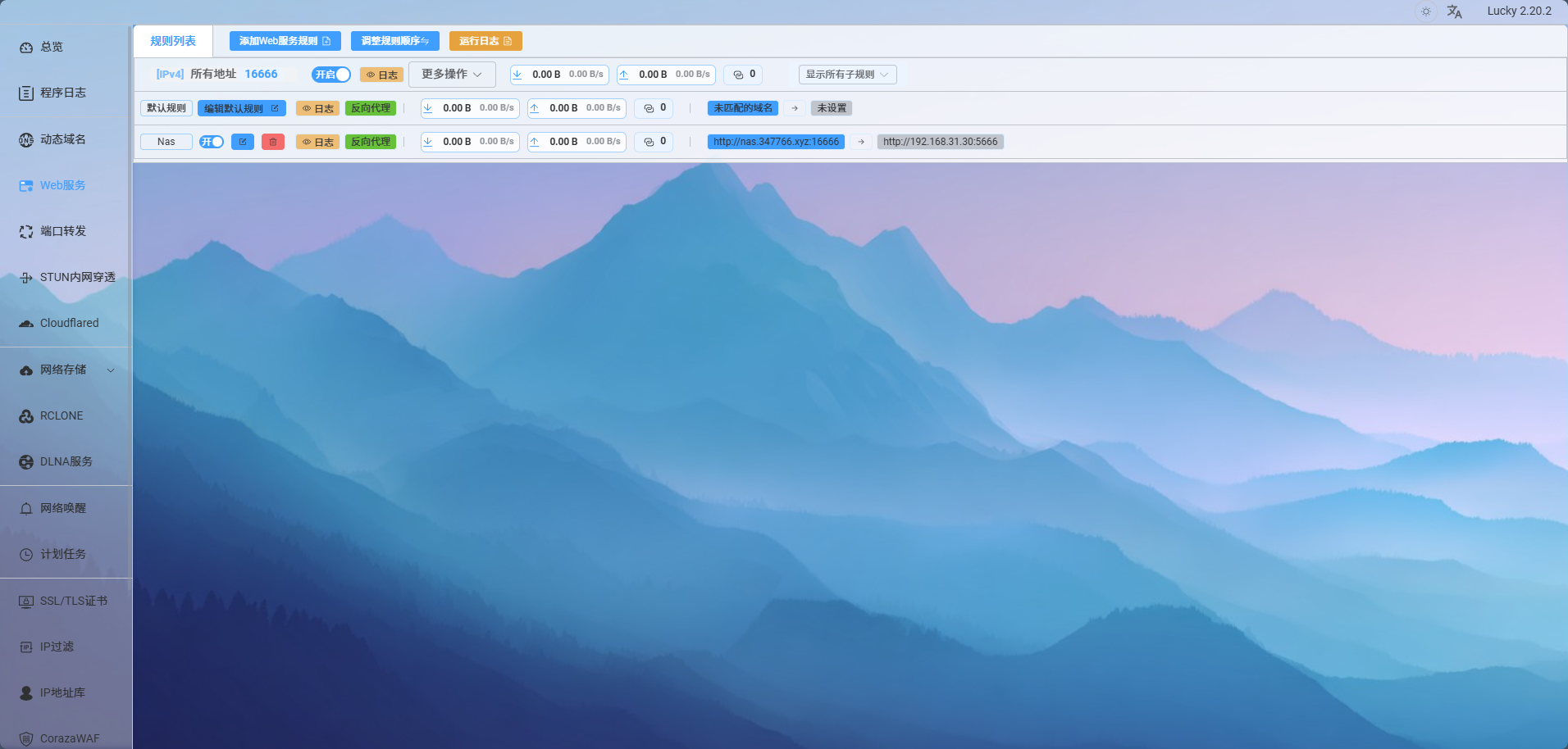 开放端口后,回到 Lucky 界面,复制刚才的前端地址看看是否能正常访问